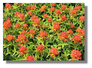 The semi-formal walled garden has shrubs and herbaceous borders, a good sized rose garden and, depending on the season, a collection of bulbs such as daffodils and tulips as well as bright blue mecanopsis (the Himalayan poppy - seen on the right) and Euphorbia (pictured on the left). Fuchias and geraniums are also a specialty at Kailzie and the walled garden has a number of more unusual shrubs as well as the more common potentilla bushes (including an archway of these) and laburnum trees.