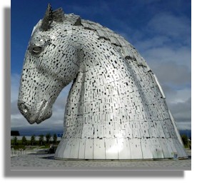 Sculptor Andy Scott creates large-scale public works of art and the Kelpies were inspired by a combination of the Clydesdale horse used for heavy work and the Scots name given to a mythological water spirit inhabiting the lochs and pools of Scotland. It has usually been described as appearing as a horse, but is also able to change shape and adopt human form.