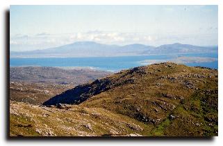 Benbecula (the stress is on the middle syllable) lies between North and South Uist and there is a causeway link to both islands. The name derives from the Gaelic "Beinn a'bhfaodhla" which means "mountain of the fords" even though the "mountain" is only 400 feet high. In the rest of the island there are many inland and sea lochs, bogs and quicksands. Gaelic is frequently used (though, as a result of Viking conquest over a 1,000 years ago, many of the place names are of Norse origin). The island was dominated by the Macdonalds of Clanranald for 500 years but it was sold to pay off debts. The island then suffered from the Clearances and many were forced to emigrate.After his defeat at the Battle of Culloden in 1746, the fugitive Bonnie Prince Charlie reached Benbecula and it was from there that he sailed Over the Sea to Skye> with Flora MacDonald>.
