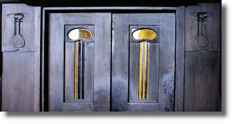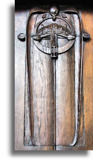 The illustration on the right is from the east porch of the church. It is surprising that the strict Free Church of Scotland (the so-called "Wee Frees") allowed the sensuous styling of Mackintosh's representations both outside the church and inside. Perhaps they didn't see them that way? On the other hand, it was the Free Church which had commissioned the monumental "Solomon's Temple" of St Vincent Street Church by Alexander "Greek" Thomson 40 years earlier. And it has to be remembered also that in the late 19th century the Free Church were regarded as the trendy ones (more so than the Church of Scotland), both theologically and in the introduction of hymns and musical instruments into worship.