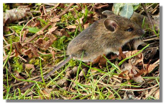 It was the rustling in the leaves that gave away the whereabouts of this tiny wood/field mouse. This was the type of mouse that Robert Burns wrote about in his poem "To A Mouse:Wee sleekit, cow'rin, tim'rous beastie,