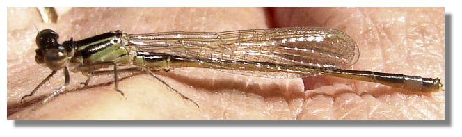 Regular readers of this section will be aware of my interest in butterflies and other insects such as damselflies and dragonflies. So you can imagine my delight when this damselfly landed on the back of my hand! Fortunately, it was my left hand and I was able to get the camera off my right shoulder to take a few pictures of it. Despite a search of reference Web sites I have been unable to identify which kind of damselfly it is. It may even have been a newly hatched one that has yet to develop its proper colouring. That could also explain it uncharacteristically landing on my hand!