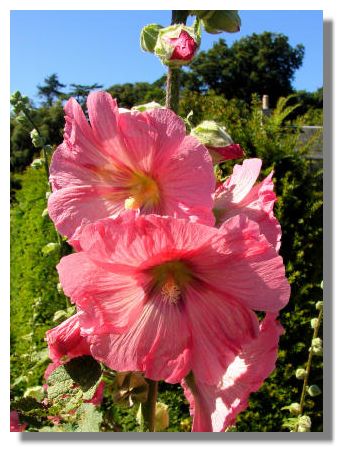 Another sign of mid-summer is when the Hollyhocks come into bloom. Growing to well over six feet - these flowers were at eye-level - it takes the plant some months to reach that height.