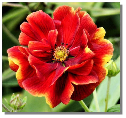 Potentilla usually come in shades of yellow or orange, with a few pink or red, but "Gloire de Nancy" produces these double reddish orange flowers with gold tips. Common names for potentilla include cinquefoil, five-fingers, tormentil, and barren strawberry. It's often hard to know the precise variety of flowers found growing in gardens, but this one (and a number of others on this page) were photographed at the Royal Botanic Gardens in Edinburgh - where many of the plants have informative labels.