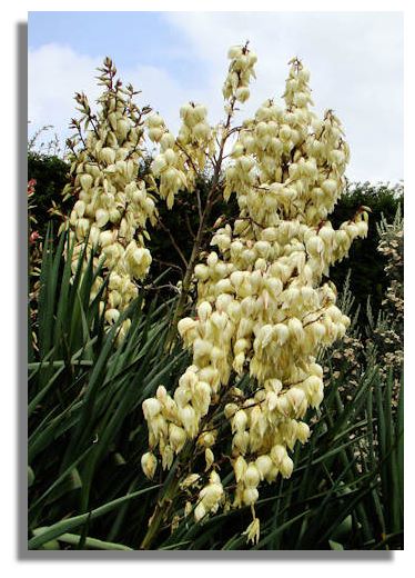 Yucca, with its long, sword-like leaves and exotic-looking flower stems which grow to 2½ feet long, look as if they would be more suitable for sunnier climates. Although originating in southern USA and Central America, there are hardy varieties which do well - such as this one here in the Royal Botanic Garden, Edinburgh.