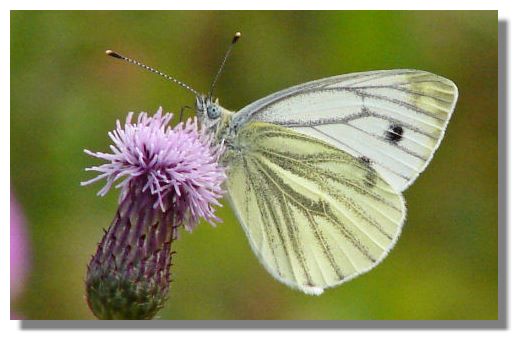 The Green Veined White is seen more frequently than the Large or Small Whites. The vein markings on the undersides of the wings make it well camouflaged when it rests feeding among vegetation.