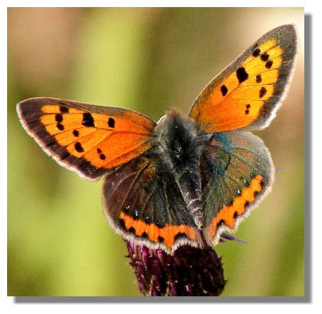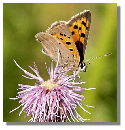 Despite its small size, the Small Copper is an aggressive, territorial insect and will chase off other butterflies, not just rivals of its own species, but also larger butterflies. With its big eyes and a fighting spirit, it's not surprising that the other butterflies retreat!
