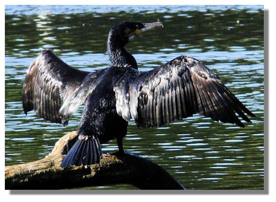 Cormorants can often be seen with their wings spread like this, basking in the sunshine to dry their wings after diving for fish. Unlike many other diving birds, their feathers are not waterproofed. This may help them dive quickly, since their feathers do not retain air bubbles. The name "Cormorant" is a contraction derived from Latin corvus marinus, "sea raven".If you want to look back at other editions of these photos of Scotland week by week, there is an Index Page