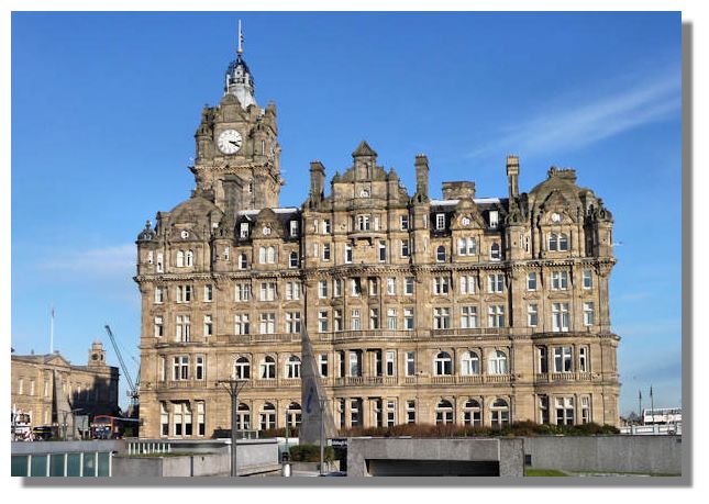 Balmoral Hotel in Edinburgh is located beside Waverley Station, the main railway terminus in the Capital. It has to be one of the most attractive buildings in the city. It was built originally as the North British Hotel for the railway company which used Waverley. It opened its doors for the first time on October 15, 1902. The clock is traditionally kept two minutes fast to ensure that tardy travellers hurry up and catch their train!