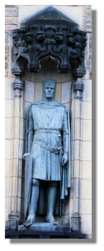 On either side of the entrance (over a drawbridge) to Edinburgh Castle are these fine statues of the Scottish heroes King Robert the Bruce (on the left) and Sir William Wallace. The bronze statues were placed on niches in the gatehouse of the castle in 1929.