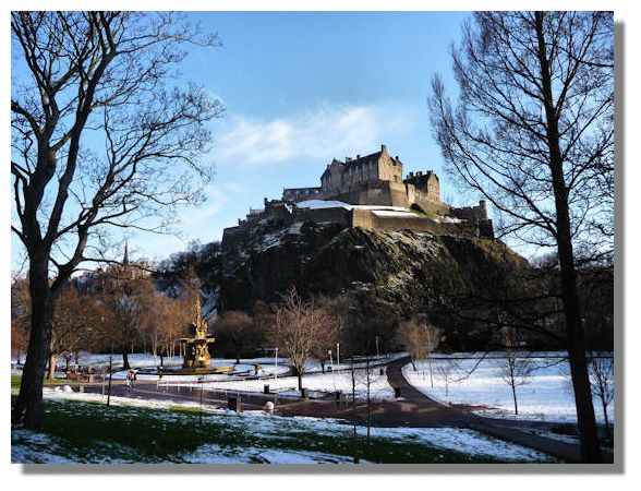 We can get snow in February though it usually doesn't last long but enough was left in Princes Street Gardens and the castle rock here to add to the picturesque scene.