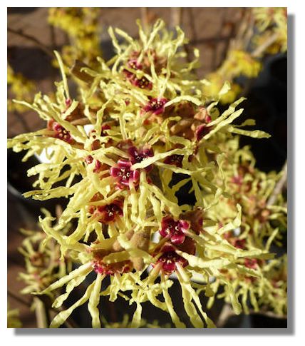 The way that even in the winter months there are plants in Scotland producing their flowers is always a delight. The crinkly strap-shaped petals of Hamamelis (also known as Witch Hazel) are only about ½ inch long, but the clusters appearing on leafless branches create a vivid show. The flowers survive even the harshest frosts and most have a slight fragrance.