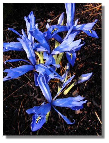 The delicate flowers of Iris Reticulata seem quite large on the screen, but are in reality quite small, only about an inch across.