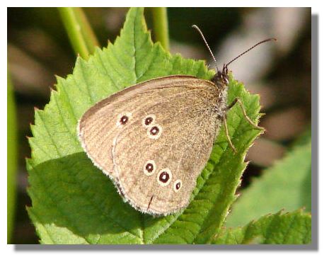 The prominent rings on the wings of this butterfly gave it its name - Ringlet. It's overall brown colour makes it easy to mistake it for a Meadow Brown as it zips past, but it is a smaller butterfly - and once you see the distinctive markings, it is easy to identify. This one was at the side of a country road, north of Glasgow, last Sunday.