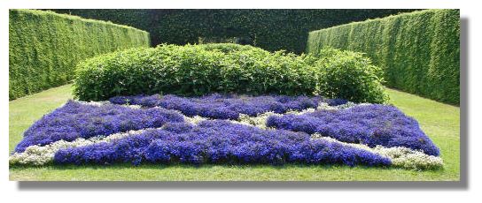 The Botanic Garden in Edinburgh has a large number of different sections, covering different types of plants. This bed of blue and white Lobelia in the "Demonstration Garden" was in the form of the Saltire, Scotland's national flag. The purists might argue that the blue is not the correct Pantone 300 shade - in other words, azure or sky blue. But it still makes a striking picture. When taking this shot in the warm sunshine on Tuesday, I had to "wait my turn" as other photographers took the same view!