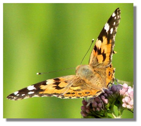 Since early May when the Orange Tip butterflies were still dancing around, these insects have been conspicuous by their absence, with only a few faded and tattered Peacock butterflies surviving after their winter hibernation. So it was with some delight that this Painted Lady was spotted at the nature reserve at Lochwinnoch in Renfrewshire. They don't overwinter in Scotland and migrate here from the Mediterranean.