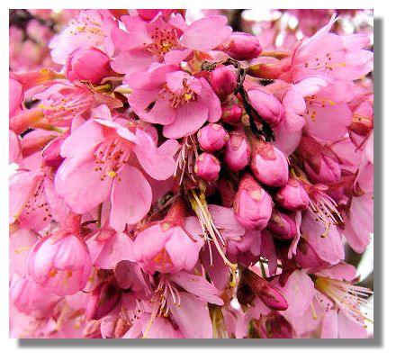 This is another early flowering variety - this time one of the many types of prunus. It could be cherry, almond, plum or peach etc. But as they are usually grown for their attractive spring flowers, we don't often see any fruit being produced later in the season.