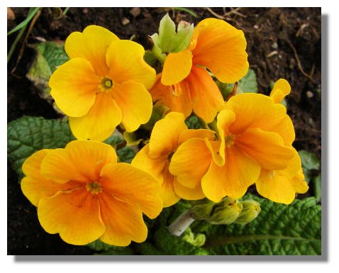 Polyanthus plants were originally created by crossing Primroses with Cowslips - a taller variety the Primrose. Over the years plant breeders have created a huge variety of colours. Although they are spring flowering (and autumn/fall flowering too), these ones beside a country church north of Glasgow, were probably brought on under glass to make them available outside so early in the year.