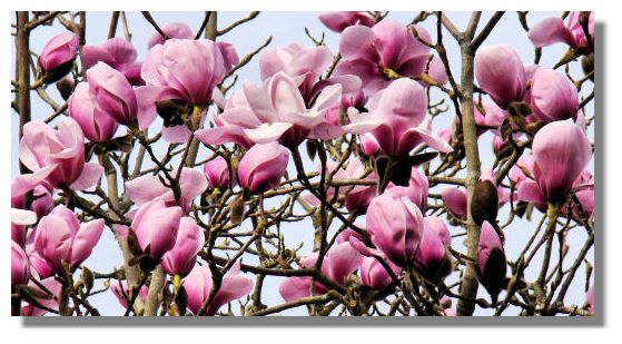 Despite the cold, sometimes frosty weather in recent weeks, the blossoms on the tall Magnolias at Culzean has continued to swell and break out of their velvety covering. Ten days ago, there were only a few glimpses of pink breaking through the buds of this tall Magnolia tree - this week they are covered in blooms. Magnolias often have a strong scent, but at least at the moment the flowers are too high to sniff!