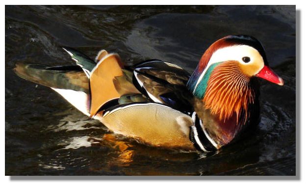 As its name implies, the Mandarin Duck originated in China. It was introduced into ornamental wildfowl collections in the UK as far back as the 18th century, but over the years many escaped into the wild. There is now an estimated population of 7,000 in Britain - mainly in the south of England, but with a smaller number in Lancashire in the north of England. They are not often seen in Scotland but this one - resplendent in its spring breeding plumage - calls in regularly at the Swan Pond at Culzean Country Park.