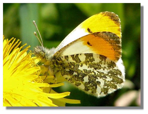 Many species of butterfly have declined in numbers but the beautiful Orange Tip has been making a rapid recovery over the last 25 years, especially in Scotland. This is a male Orange Tip - they come out of their chrysalis 7/10 days before the female. This one was having a sip of nectar from a dandelion.