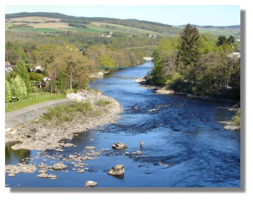 Although this picture looks as though it might have been taken from a helicopter or a low-flying aircraft, it was actually from the top of dam forming the river Tummel hydro-electric scheme at Pitlochry. The lack of rainfall has meant that the river below is at a very low level - and the salmon fisherman is taking advantage of that and wading out almost to the middle.