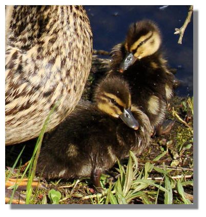 The new spring arrivals are now making their appearance, including these Mallard ducklings. Although the male and female pairs stay together during winter and spring, the male takes no part in looking after the young ducklings. The young are able to swim, dive and feed themselves soon after hatching. Which is just as well as their mother is likely to compete with them for food. But she will chase off any other birds which are threatening her brood (which can be as many as 13 youngsters).
