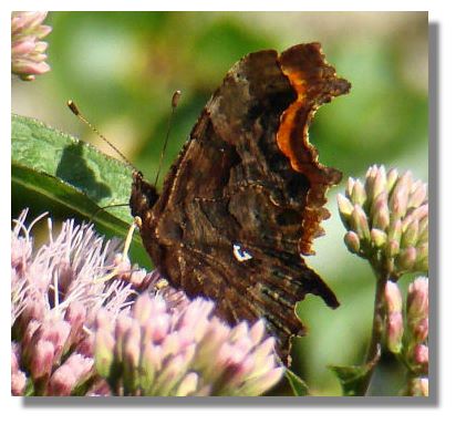 The Comma gets its name from the white mark on its underside. Maybe doesn't look too much like the punctuation mark to us, but it did to whoever originally named this butterfly!
