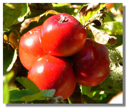 We may not be able to grow grapes or peaches outside in Scotland, but apples and pears can grow in orchards. But they are usually not grown commercially. These "Red Victoria" apples were photographed growing in the large walled garden at Culzean Castle in Ayrshire.